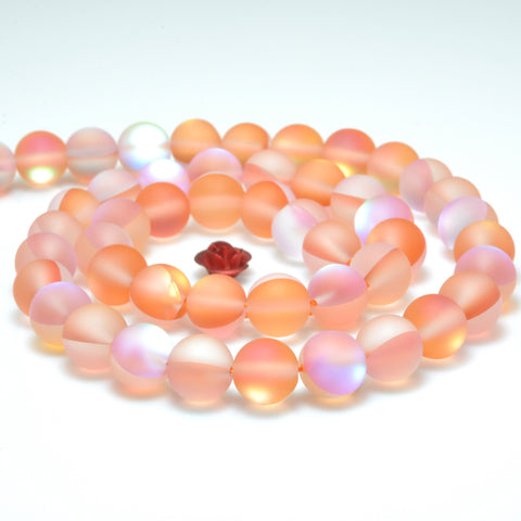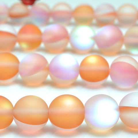 Mystic aura quartz crystal orange matte round loose beads wholesale jewelry 15"