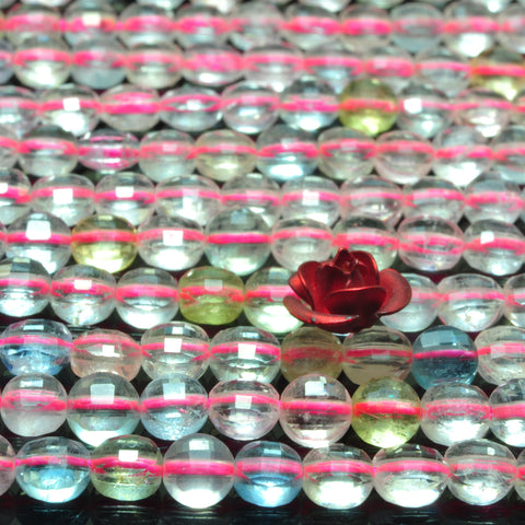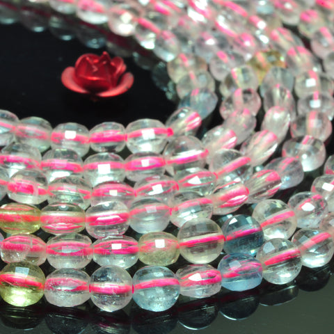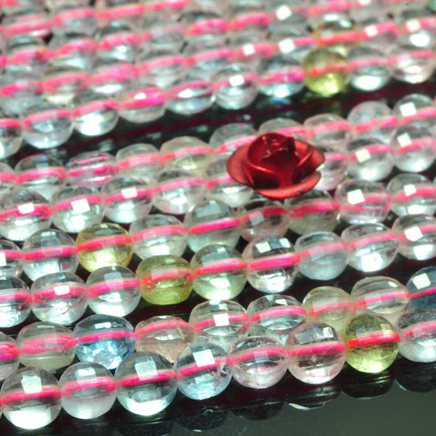 Natural aaa grade morganite mix gemstone micro faceted coin beads 4mm 15"