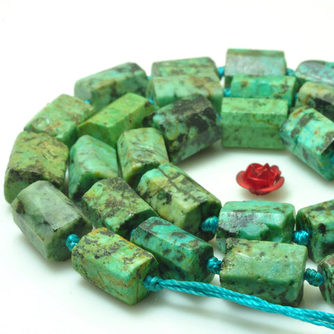 Natural african turquoise faceted nugget tube loose beads green stone wholesale jewelry making 16"