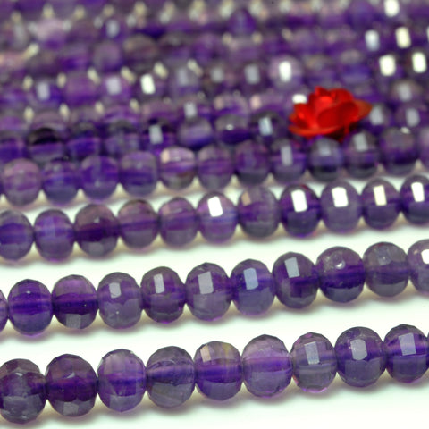 Natural amethyst faceted pumpkin rondelle beads purple gemstone wholesale jewelry making 15"