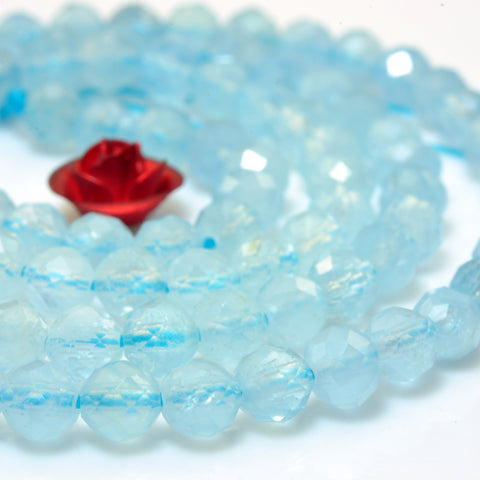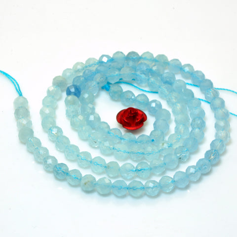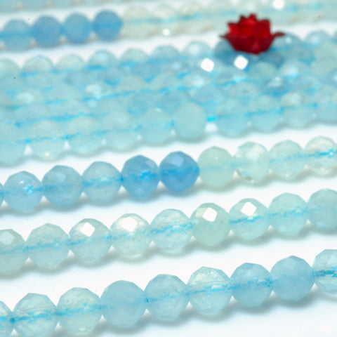 Natural aquamarine a grade faceted round loose beads wholesale gemstone jewelry making bracelet necklace diy