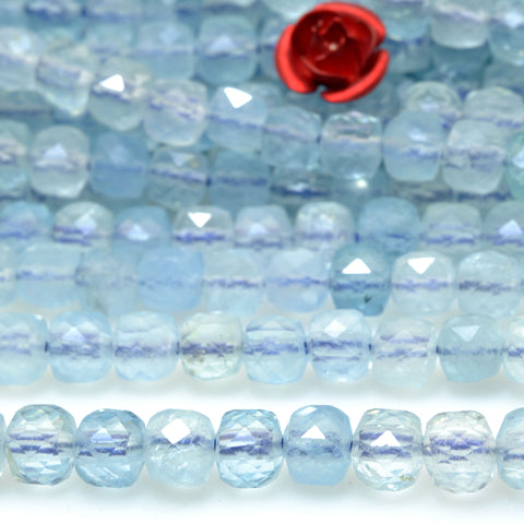 Natural aquamarine gemstone a grade faceted cube loose beads wholesale jewelry making 4mm 15"
