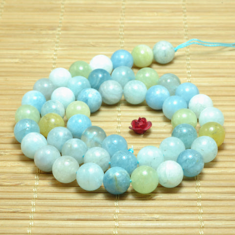 Natural aquamarine gemstone smooth round loose beads wholesale jewelry making 15"