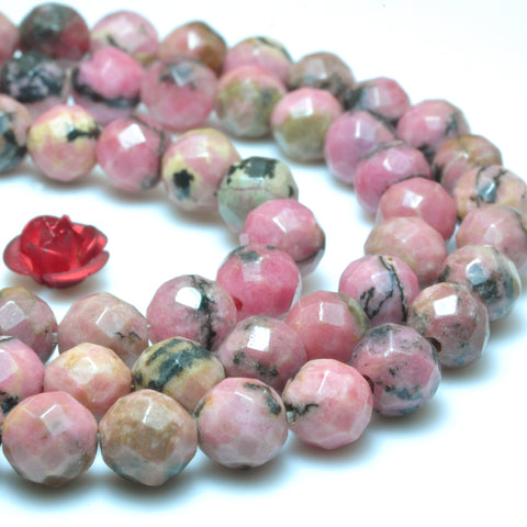 Natural black banded rhodonite faceted round beads wholesale gemstone jewelry making 15"