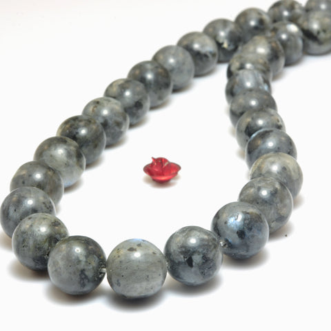 Natural black labradorite smooth round beads larvikite stone wholesale gemstone jewelry 15"