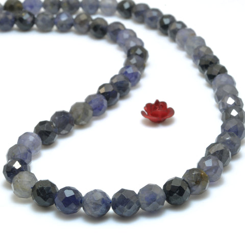 Natural blue iolite gemstone faceted loose round beads wholesale jewelry making 15"