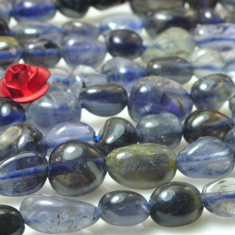 Natural blue iolite smooth pebble chip beads gemstone 5-8 mm 15"