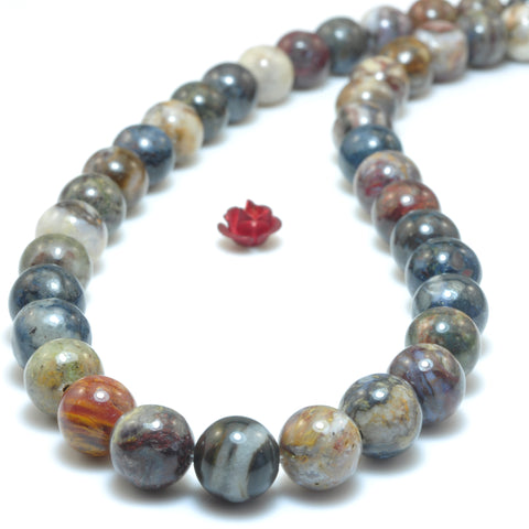 Natural blue pietersite smooth round loose beads gemstone wholesale jewelry 15"