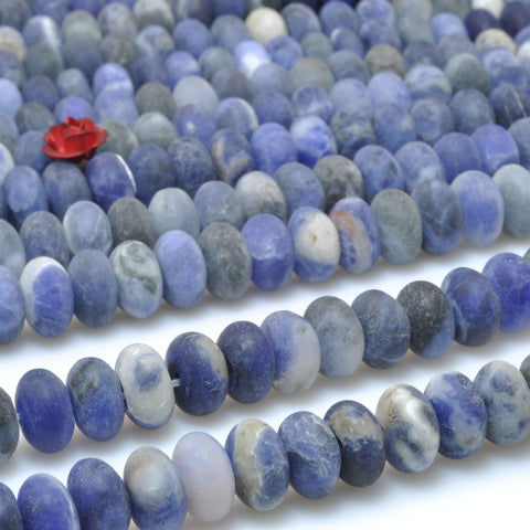 Natural blue sodalite matte rondelle loose beads wholesale gemstone jewelry making 15"