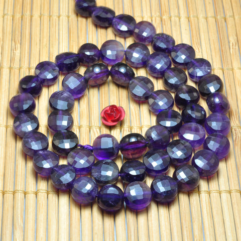 Natural dark amethyst gemstone micro faceted coin loose beads wholesale jewelry making 15"