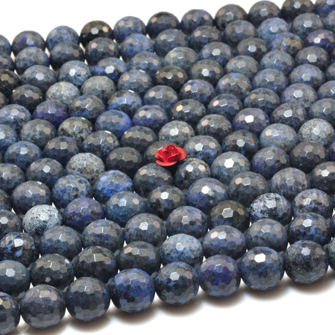 Natural dark blue dumortierite faceted round beads gemstone wholesale jewelry making 15"