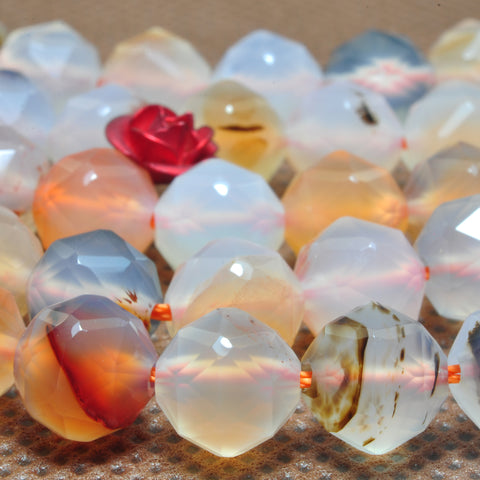 Natural dendritic agate diamond faceted round loose beads wholesale gemstone jewelry making bracelet necklace diy