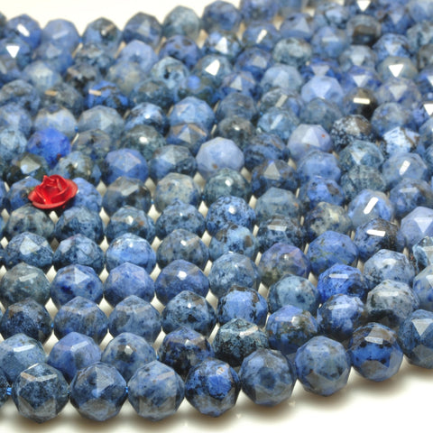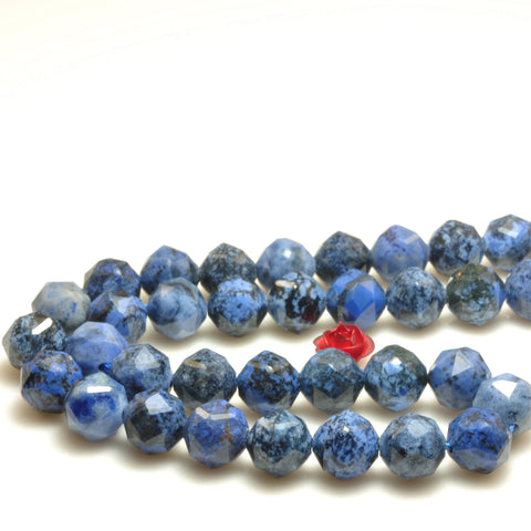 Natural dumortierite diamond faceted round loose beads blue gemstone jewelry 15"