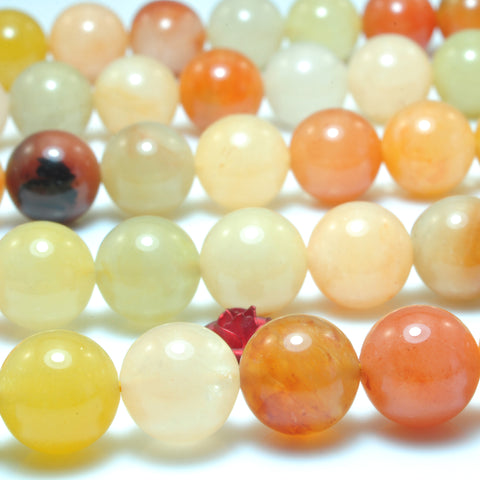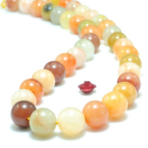 Natural gold silk jade smooth round beads yellow jade gemstone wholesale jewelry making 15"
