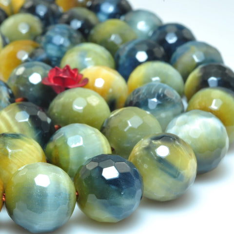 Natural golden blue tiger eye gemstone faceted round loose beads wholesale jewelry making bracelet design 15"