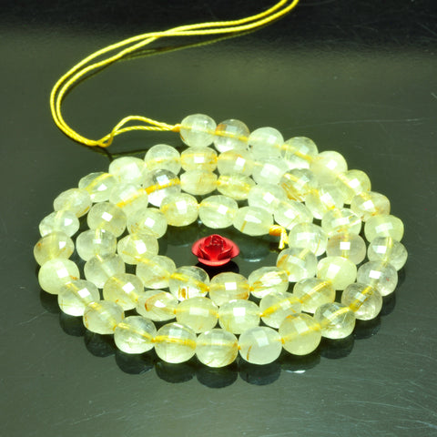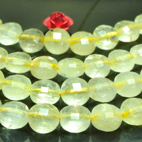 Natural golden rutilated quartz faceted coin loose beads wholesale yellow gemstone 6mm