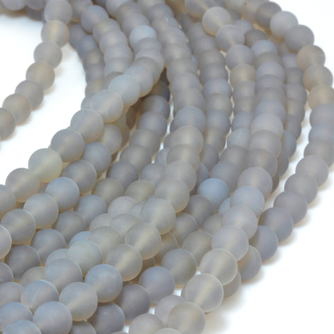 Natural gray agate matte round loose beads wholesale gemstone jewelry making 4mm-12mm 15"