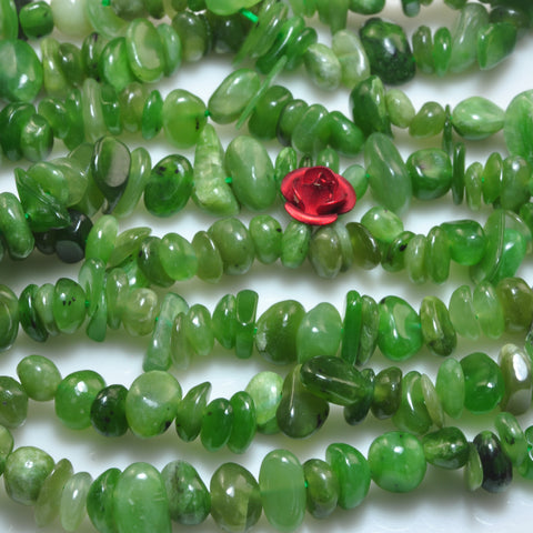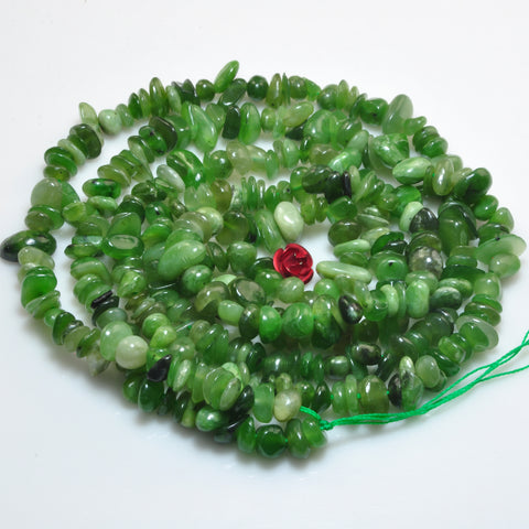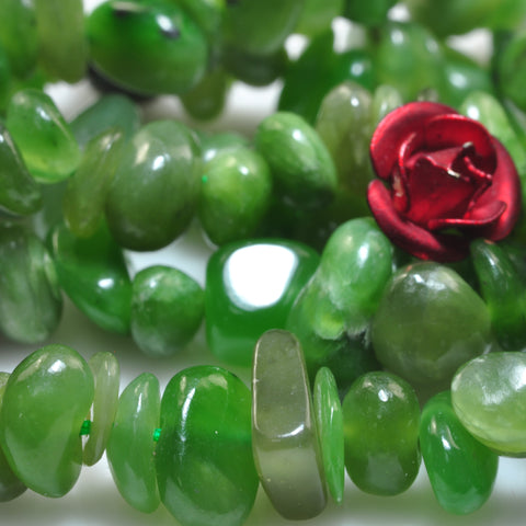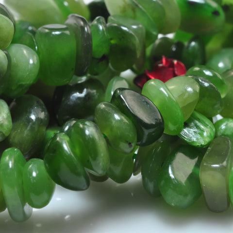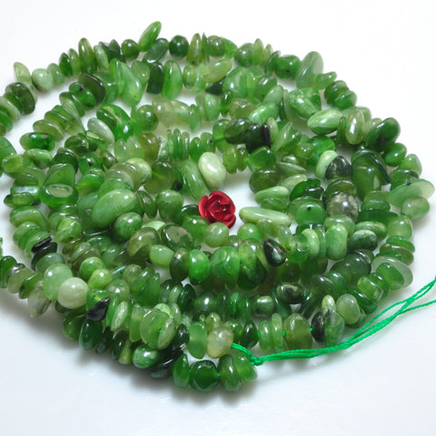 Natural green jade smooth pebble chip beads gemstone 5-9mm 15"