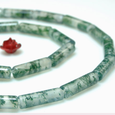 Natural green moss agate aa grade smooth tube cylinder beads gemstone wholesale jewelry making 15"