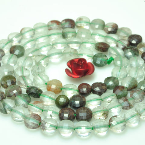 Natural green phantom quartz micro faceted coin loose beads wholesale gemstone jewelry making 4mm 15"