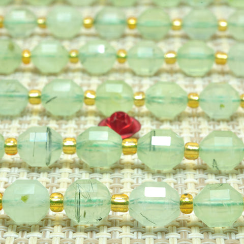 Natural green prehnite faceted double terminated point beads wholesale gemstone jewelry 15"