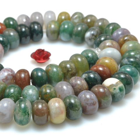 Natural indian agate smooth rondelle beads green gemstone wholesale for jewelry making bracelet necklace diy