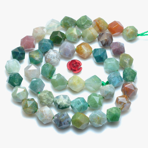 Natural indian agate star cut faceted nugget loose beads wholesale green gemstone jewelry making 15"