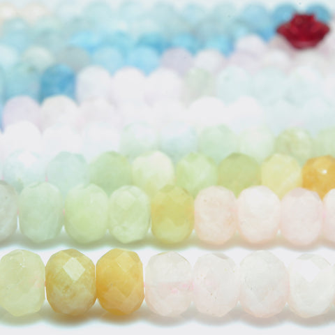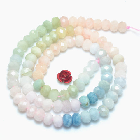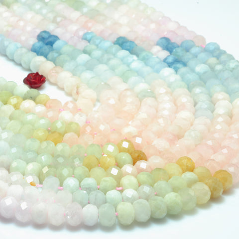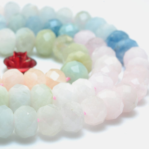 Natural morganite mix aquamarine faceted rondelle beads wholesale gemstone jewelry 15"