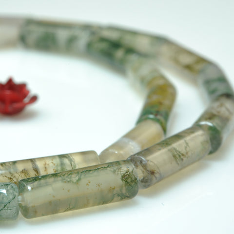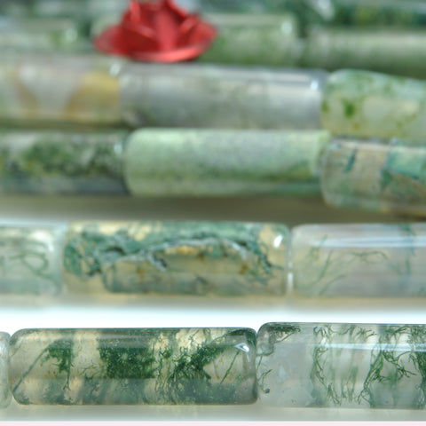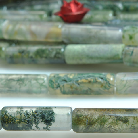 Natural moss agate a grade smooth tube cylinder beads gemstone wholesale jewelry making 15"