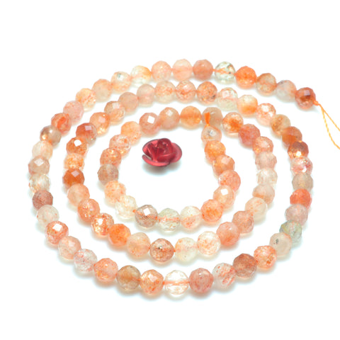 Natural orange sunstone faceted round beads wholesale gemstone jewelry making 15"