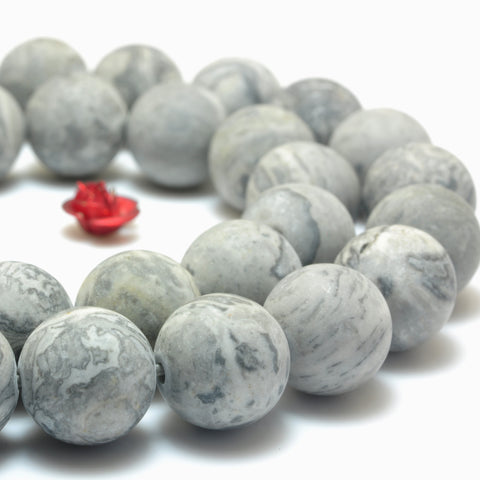 Natural picasso jasper matte round beads gray map stone wholesale jewlery 6mm-12mm 15"