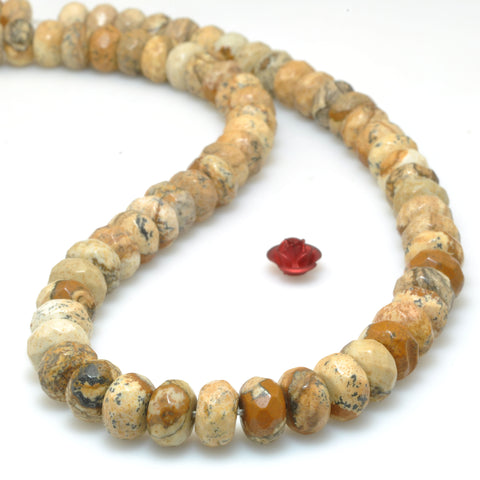 Natural picture jasper faceted rondelle beads yellow stone wholesale gemstone wholesale jewelry making 15"