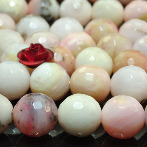 Natural pink opal faceted round loose beads wholesale gemstone jewelry 15"