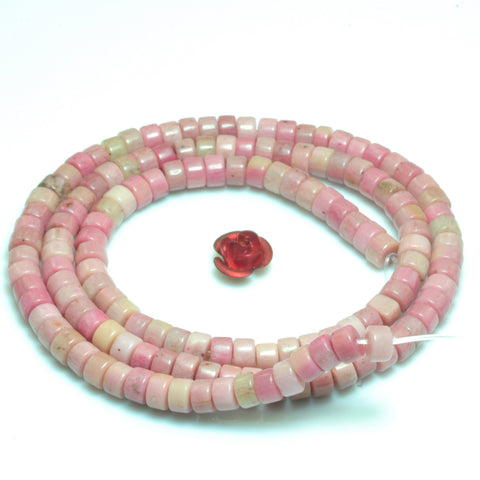 Natural pink rhodonite gemstone smooth wheel heishi beads 2x4mm 15"