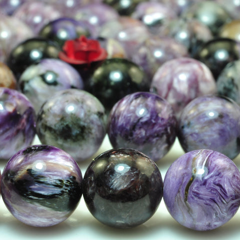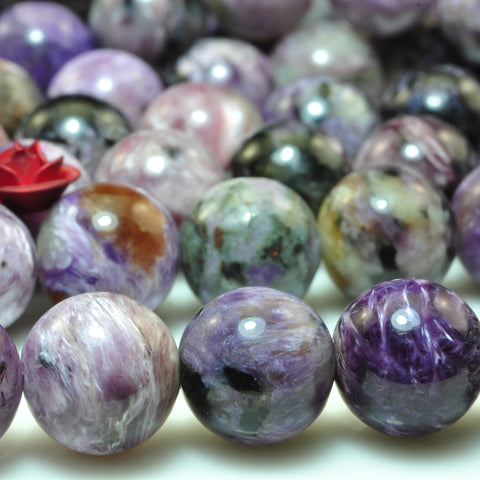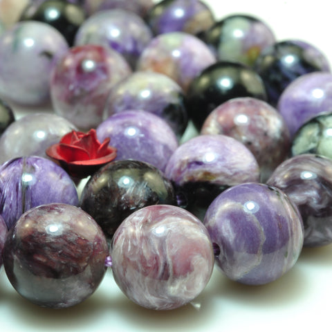 Natural purple charoite gemstone smooth round loose beads wholesale jewelry making 15"