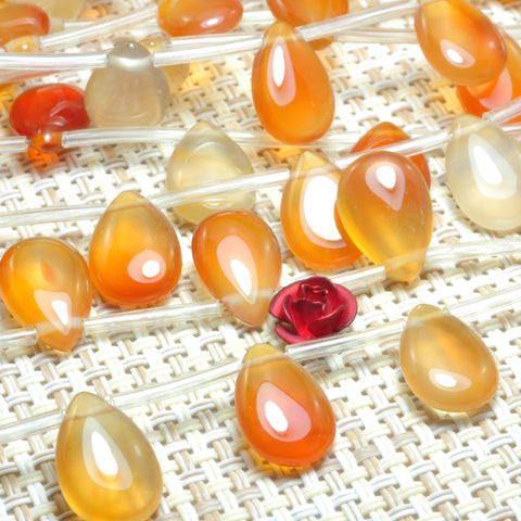 Natural rainbow agate smooth teardrop beads top drill gemstone wholesale jewelry 8x12mm 15"
