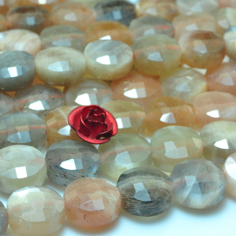 Natural rainbow moonstone faceted coin beads gemstone wholesale 15"