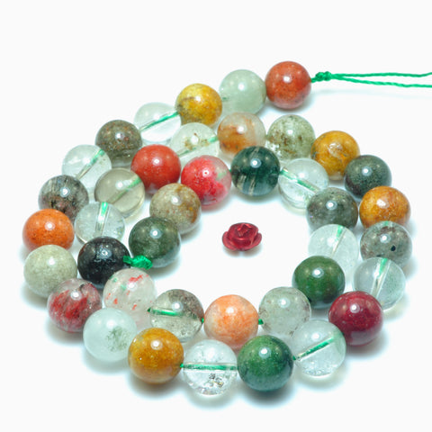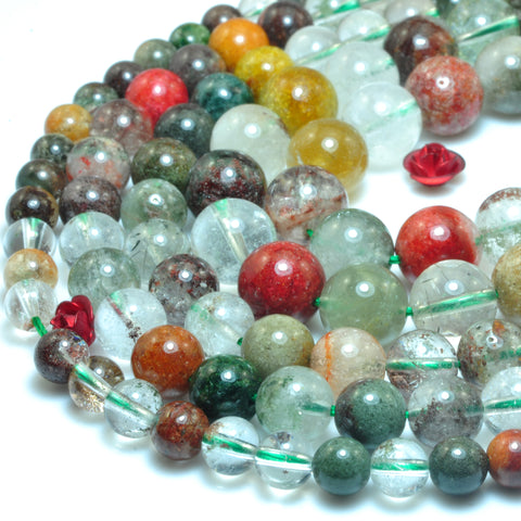 Natural multicolor phantom quartz smooth round beads loose gemstone wholesale for jewelry making bracelet necklace