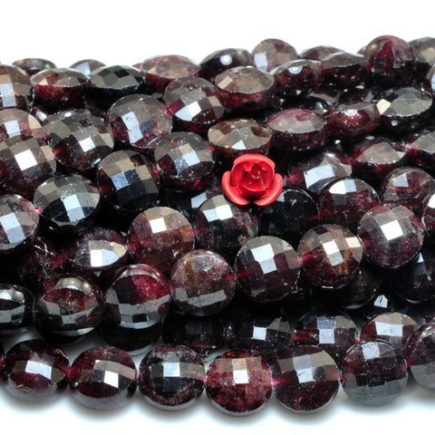 Natural red garnet gemstone micro faceted coin loose beads wholesale jewelry making 6mm 8mm 15" strand