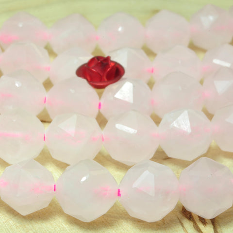 Natural rose qaurtz diamond faceted round loose beads pink quartz gemstone wholesale jewelry making 15"