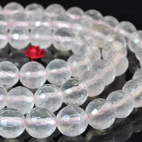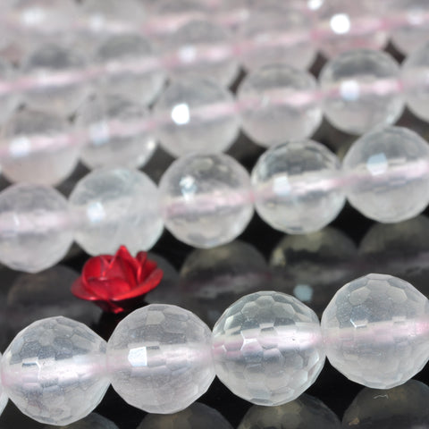 Natural rose quartz faceted round beads gemstone 8mm 15"