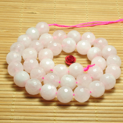 Natural rose quartz faceted round beads pink gemstone wholesale 15"