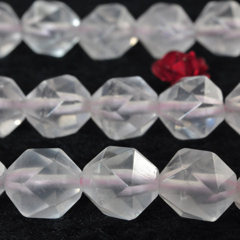 Natural rose quartz star cut faceted nugget beads gemstone 8mm 15"