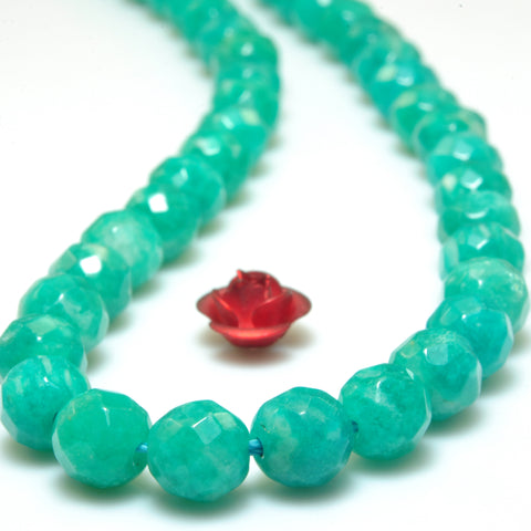 Natural russian amazonite faceted round beads green gemstone wholesale jewelry making 15"