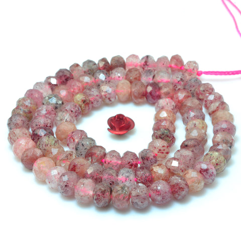 Natural strawberry quartz faceted rondelle loose beads wholesale gemstone jewelry making bracelet necklace diy