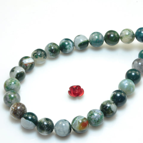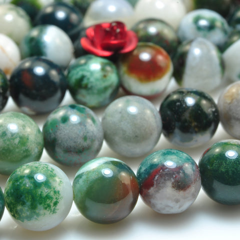 Natural tree agate blood green gemstone smooth round beads 8mm 15"