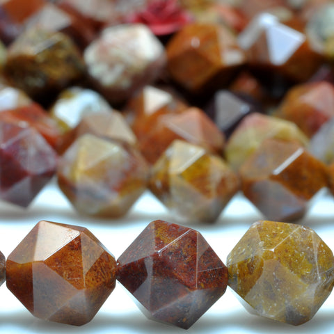 Natural warring states red jasper star cut faceted nugget beads wholesale gemstone jewelry 15"