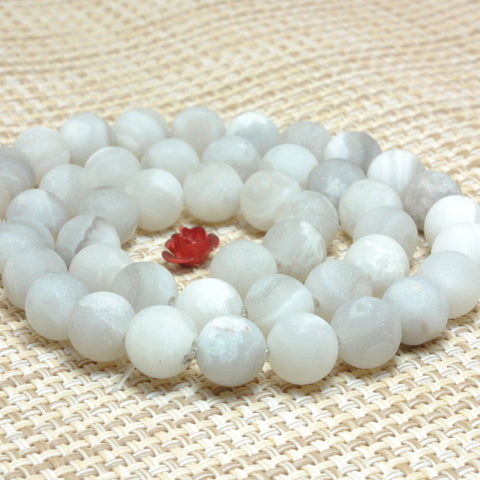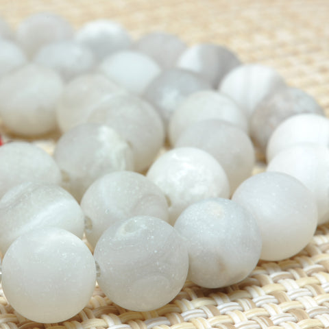 Natural white crazy lace agate matte round beads wholesale gemstone jewelry making 15"