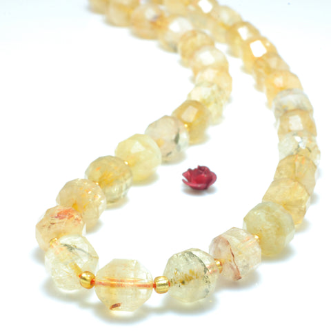 Natural yellow citrine crystal faceted double terminated point beads wholesale gemstone jewelry 15"