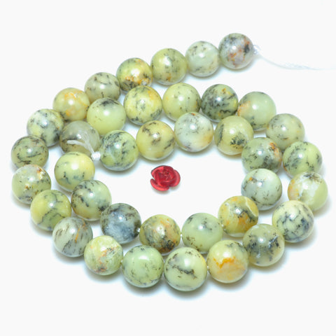 Natural yellow moss opal smooth round loose beads gemstone wholesale jewelry making bracelet design